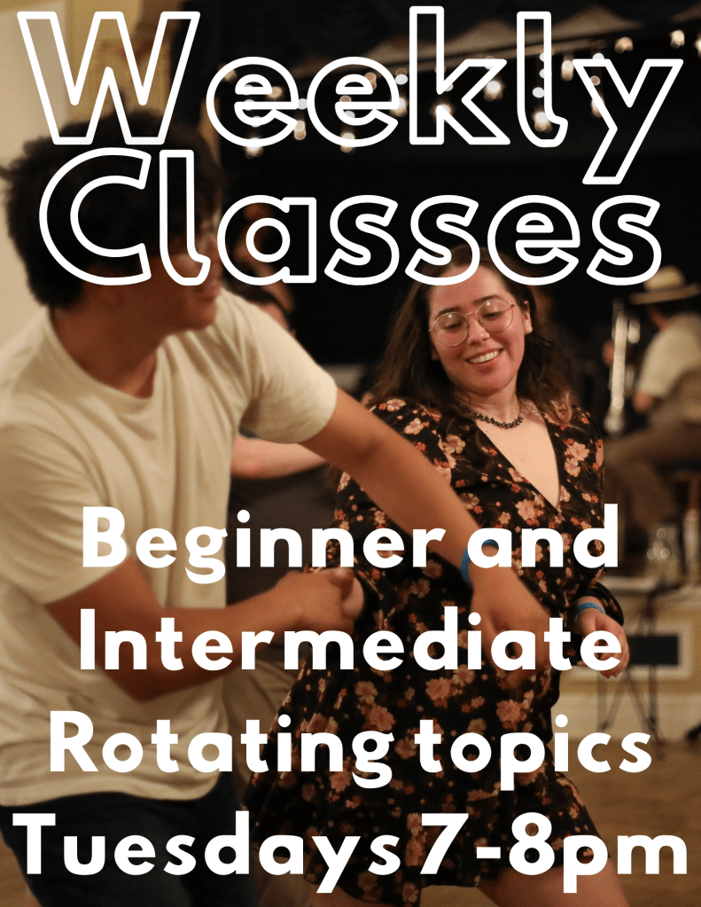 Every Tuesday night we host swing dance classes (7-8pm) for all skill levels, followed by a dance (8-9:30) at the Hotel Leo Ballroom. We invite live bands to play once a month, and we build community through outreach with performances. Join us any week!